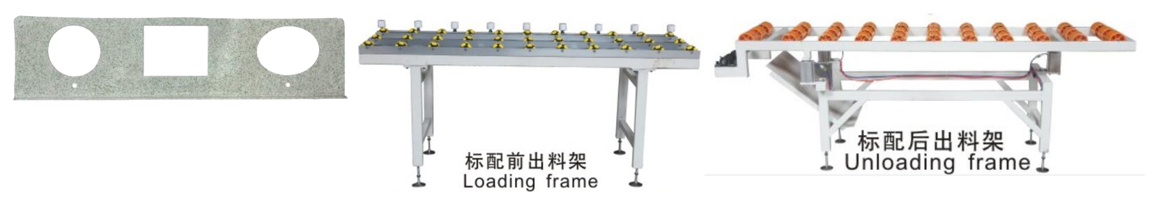 產品說明 一、采用數控原理,自動進料,自動裝夾,自動開孔、成型,自動出料; 二、配合流水線作業,輸送帶傳動,自動化程度高; 三、本機是目前國內最先進的臺面開孔成形拋光機。